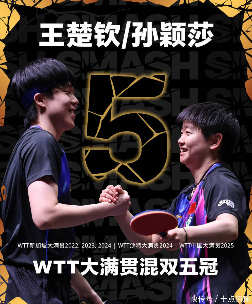 2025年10月3日的WTT中国大满贯混双决赛场上,王楚钦与孙颖莎以一场干净利落的3-0完胜队友黄友政/陈熠,三局比分定格在11-8、11-9、11-9,这场奏效不仅让他们在主场捧起混双冠军奖杯,更记号着这是“莎头组合”在WTT大满贯混双赛事中得益的第五个冠军