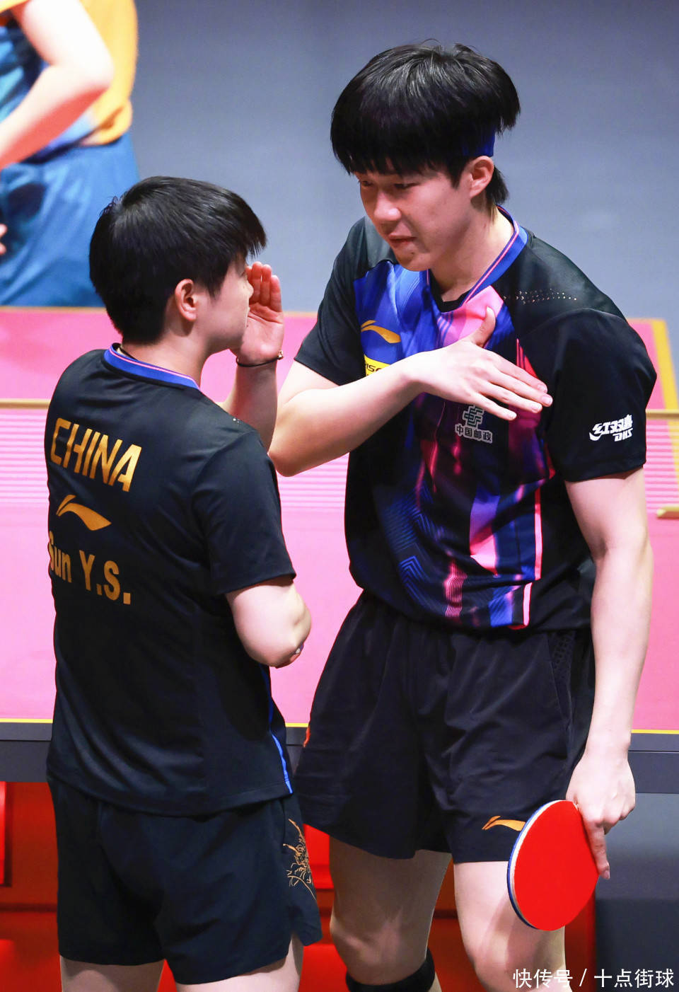 随后的两局比赛,两边张开更为强烈的较量,第二局王楚钦/孙颖莎一度以9-2大比分擢升,却被敌手冒失追至9-10;要道时刻,王楚钦的一板过强解锁定胜局,11-9再下一城;第三局中,黄友政/陈熠曾以5-2擢升,但孙颖莎实时增多了反手质料,王楚钦在相握球中的连贯性也保握得恰到刚正,最终王楚钦一记正手爆冲匡助组合以11-9锁定胜局,横扫夺冠